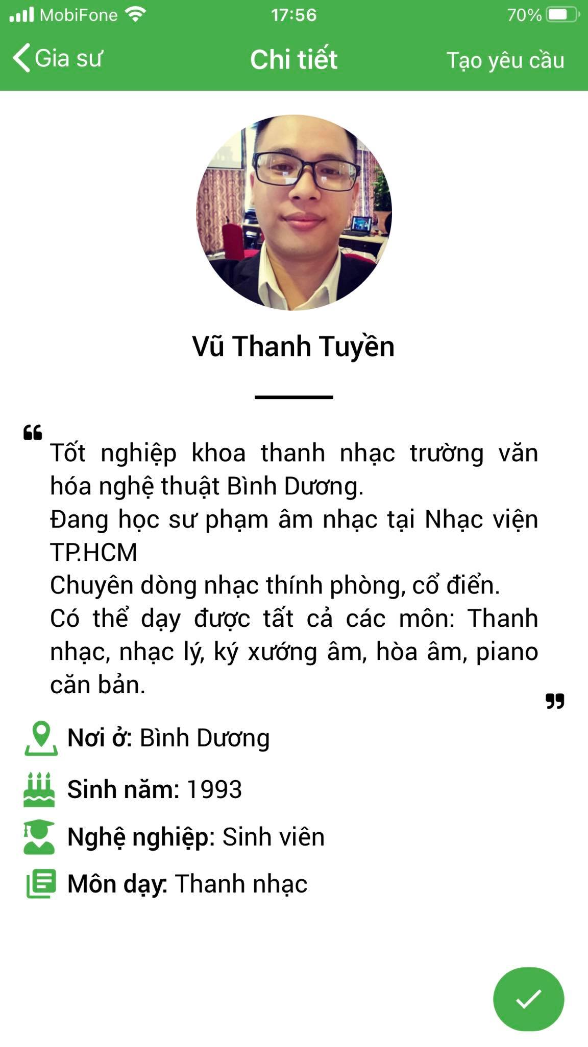 XEM THÊM PROFILE GIA SƯ DẠY THANH NHẠC TẠI HỆ THỐNG DAYKEMTAINHA.VN >>